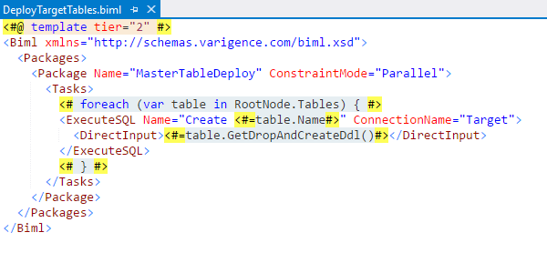 Write Biml code with syntax highlighting, making it easier to read and write Biml.
